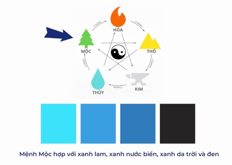 Xanh dương và đen trong chủ đề mệnh Mộc hợp màu nào