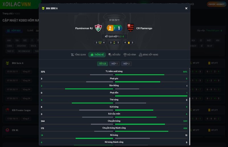 Xoilacvn không chỉ cập nhật ket qua bong da real-time mà còn hiển thị đầy đủ:
